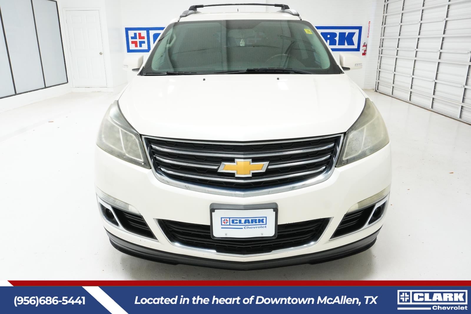 This 2015 Chevrolet Traverse LT, has a White Diamond Tricoat exterior and an Ebony interior color. 92,556 miles. Stock Number 53703A. You can connect with us by calling 956-952-7650. OTHER NOTABLE FEATURES AND OPTIONS YOU SHOULD KNOW ABOUT: Preferred Equipment Group 1LT8-Way Power Driver Seat with Power LumbarFront Row Side-Impact Air BagsBody-Color Bodyside MoldingsRemote Vehicle StartSingle-Zone Manual Front Climate ControlBody-Color Heated Power-Adjustable Outside MirrorsLeather-Wrapped Steering WheelFront Fog LampsInterior Wood Grain Center Stack and Interior TrimRear Park AssistEnhanced Driver Information CenterBluetooth® For PhoneStandard Speaker SystemHit the Road Package ($920 value)Roof Rack Longitudinal C-Channels and Cross RailsChrome Assist Steps Convenience Cruise control with steering wheel mounted controls. Set it and forget it. Road trips used to be stressful, until cruise control set the pace. Simply set the desired speed using the steering wheel mounted controls and it will maintain that speed without driver intervention. This can help minimize driver fatigue and improve overall fuel economy. Resting your right foot is right at your fingertips thanks to cruise control with steering wheel mounted controls. Keyfob engine start control - Get an early start. Remotely start your vehicle's engine from the key fob, ensuring your ride is ready to go when you get in. Now you can stay comfortable inside while your vehicle gets comfortable outside, thanks to Keyfob engine start control.Safety and Security Rear camera - Watching your back! The rear camera helps you see obstacles and hazards you otherwise couldn't by showing enhanced images of what is behind you. The rear camera is an extra set of eyes that's both convenient and safe. Brake assist - Stop right there. Something jumps out into the middle of the road and you need to stop now! With brake assist, you will. It uses the speed of the brake pedals travel to sense panic braking, then applies all available power to boost your stopping power. Brake assist can stop the accident before it is one.Technology and Telematics Selective Internet access - a more focused delivery. Selective internet access allows you to tailor the features for your feed, such as sports scores, local news, or current weather. When it comes to getting what you want, selective internet access is a net gain. EMISSIONS, FEDERAL REQUIREMENTS, ENGINE, 3.6L SIDI V6, TRANSMISSION, 6-SPEED AUTOMATIC, WHEELS, 4 - 18" X 7.5" (45.7 CM X 19.1 CM) MACHINED, TIRES, P255/65R18 ALL-SEASON, BLACKWALL, SEATING, 8-PASSENGER (2-3-3 SEATING CONFIGURATION), WHITE DIAMOND TRICOAT, RECLINING FRONT BUCKETS, EBONY, SEAT TRIM, PREMIUM CLOTH, AUDIO SYSTEM, COLOR TOUCH AM/FM/SIRIUSXM RADIO WITH CD PLAYER, LPO, 'HIT THE ROAD' PACKAGE, LPO, ROOF RACK LONGITUDINAL C-CHANNELS AND CROSS RAILS, LPO, CHROME ASSIST STEPS, LICENSE PLATE BRACKET, FRONT MOUNTING PACKAGE At Clark Chevrolet, were here to Serve you! Our staff is 100% dedicated to customer satisfaction and we understand that you need clear, transparent information throughout the car buying process. With our live market pricing philosophy, we offer the right cars at the right price, and the transparency to back it up! FINANCING OPTIONS: Take advantage of our attractive low-rate financing options. Our access to various Credit Unions and National Banks can provide financing for most credit levels. We can tailor a finance package to fit your needs. To get started, complete our secure online credit application.